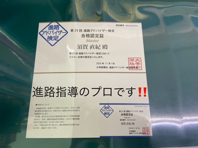 教室長は進路アドバイザー検定において上位合格した進路指導のプロです