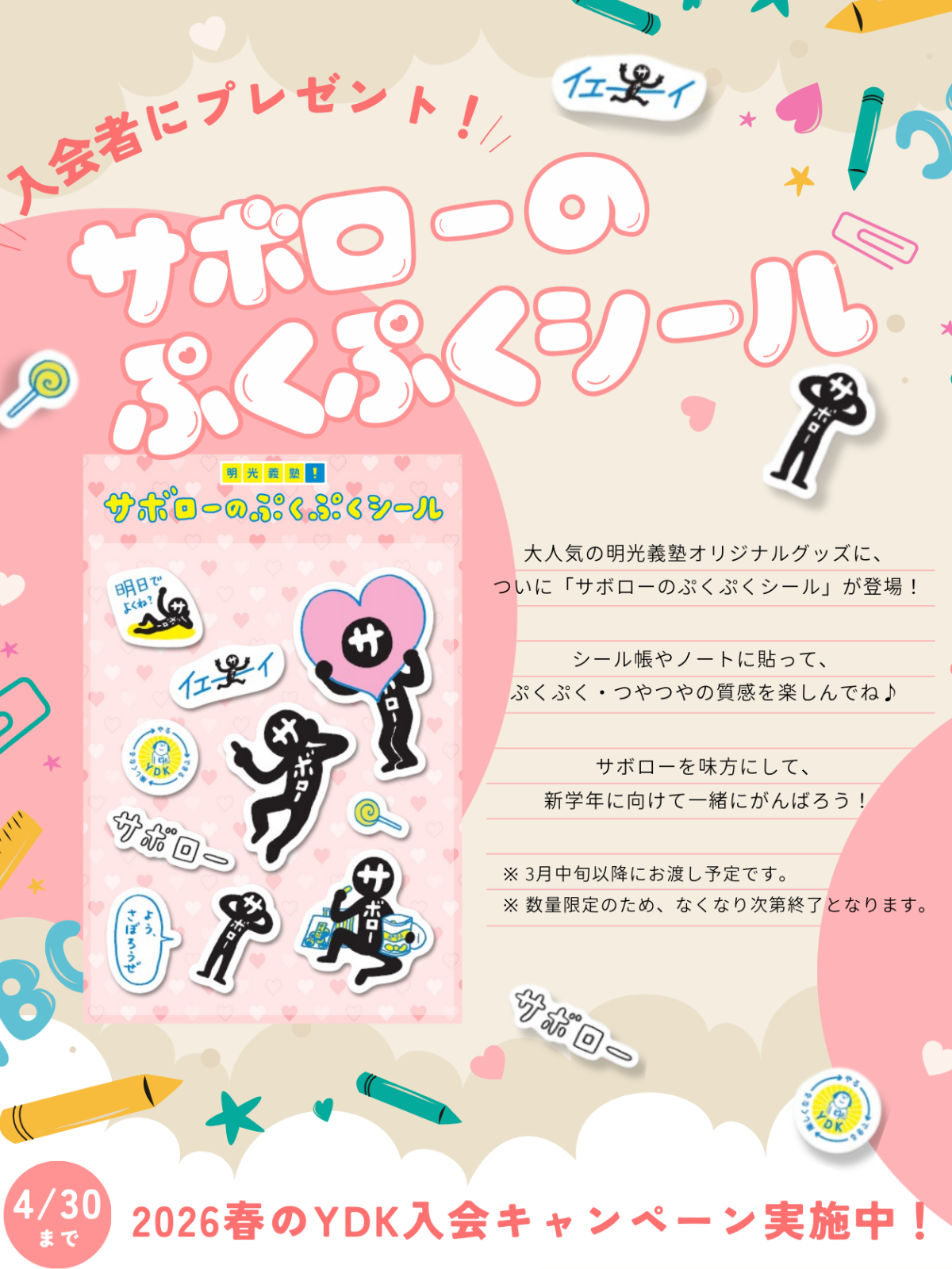 大人気キャラクター「サボロー」のぷくぷくシールをプレゼント!