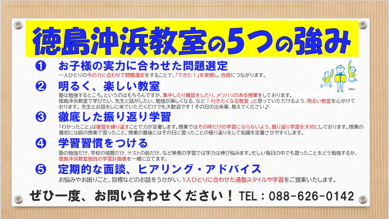 こんにちは、明光義塾徳島沖浜教室のHPをご覧いただき、ありがとうございます!