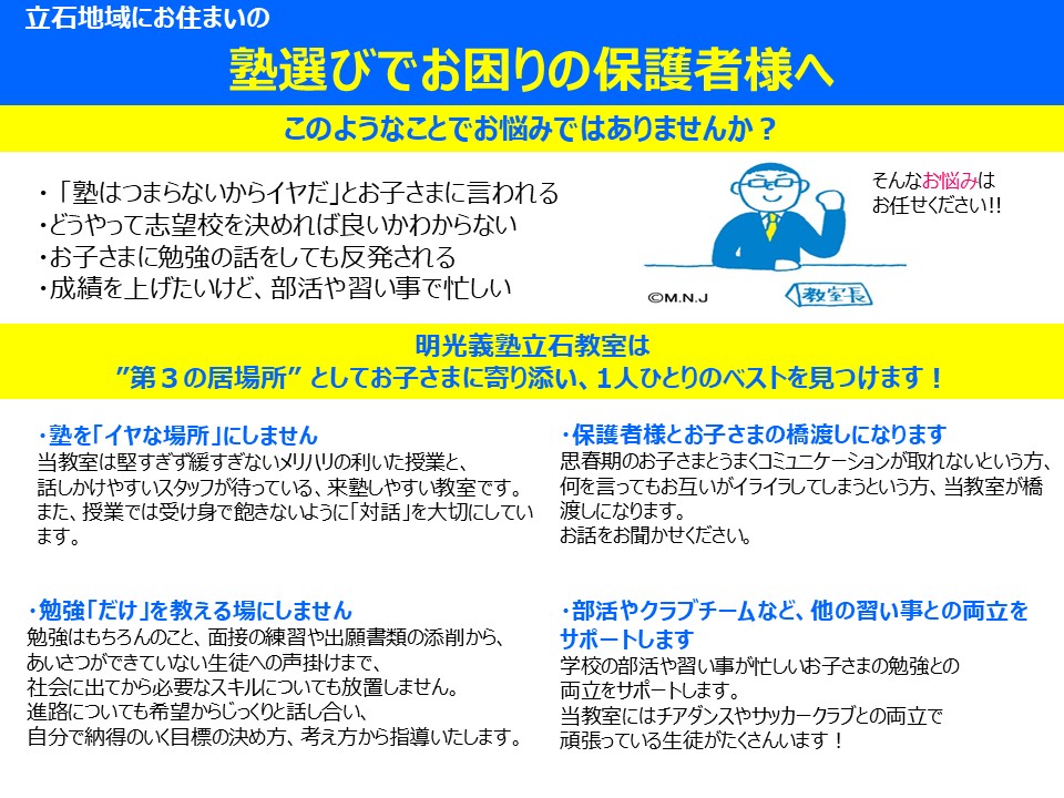 〜明光義塾立石教室のお約束〜