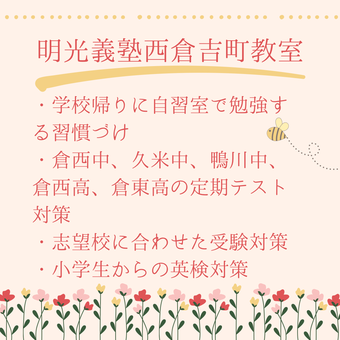はじめまして、明光義塾西倉吉町教室の酒井です。