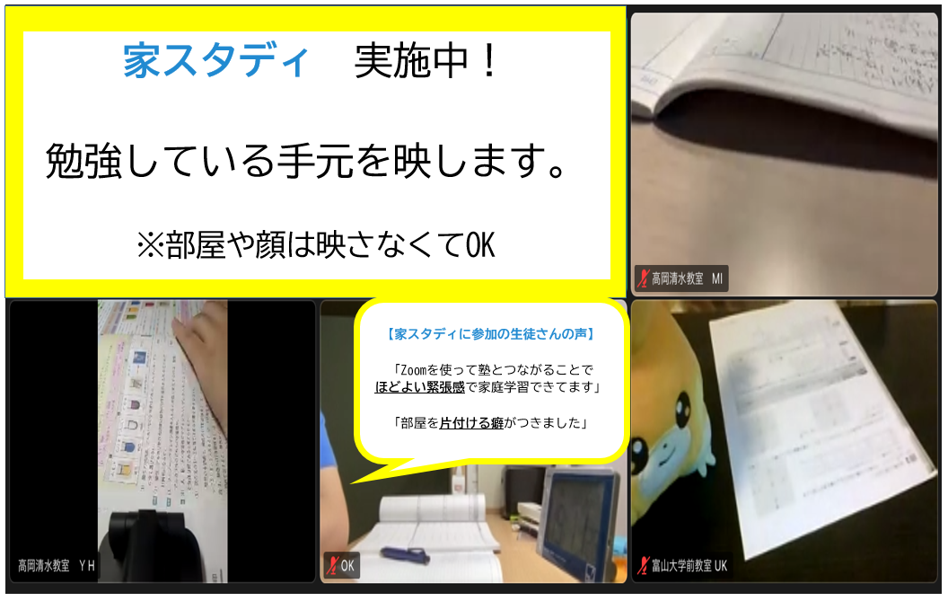 ※講習中、家スタディは一時中断いたします。