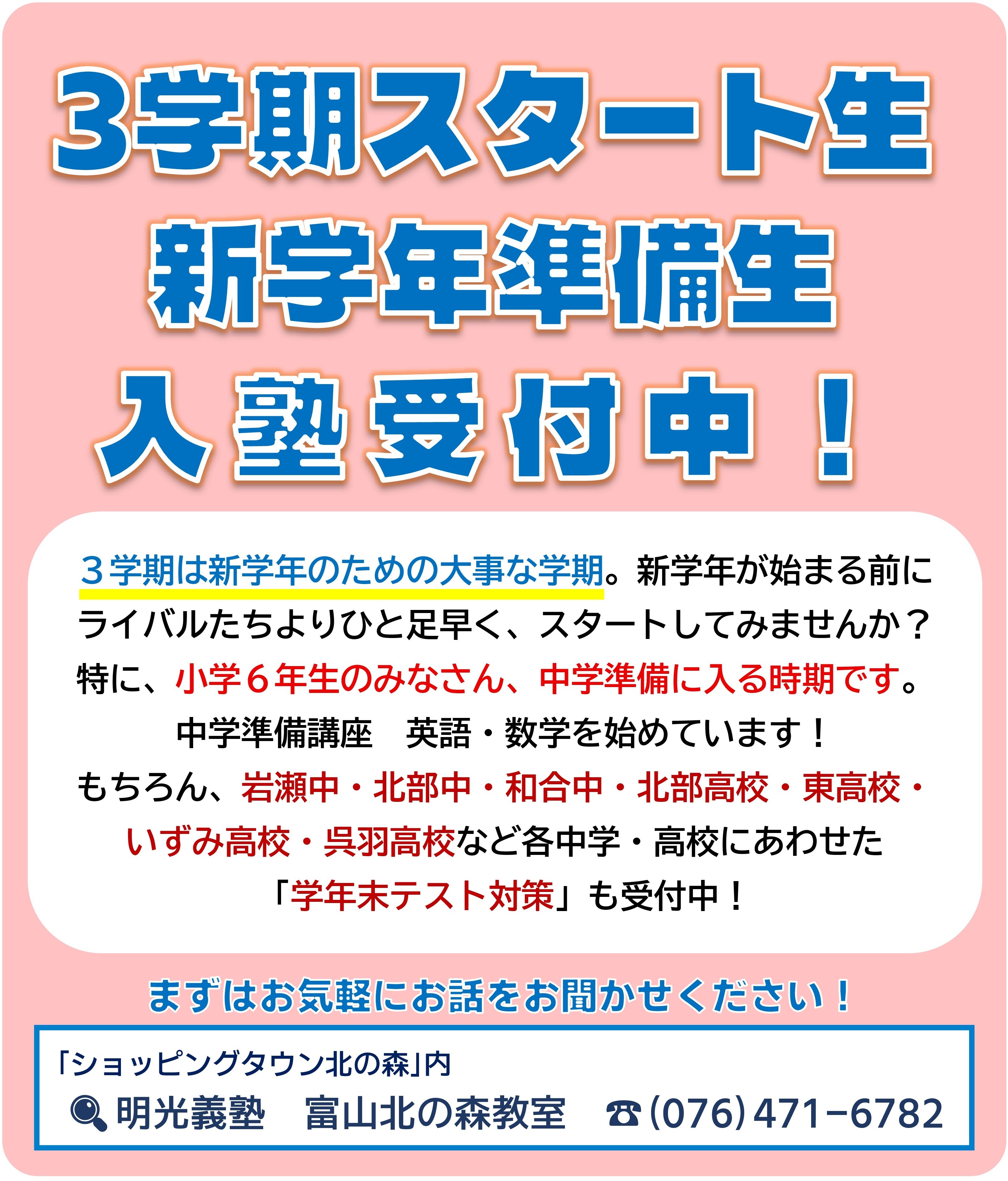 岩瀬地区、富山市北部地域、和合地域の進路相談は、ぜひ明光義塾 富山北の森教室におまかせください!