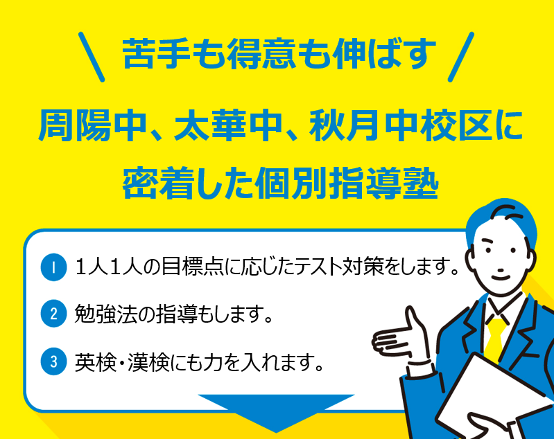 中間テストお疲れ様でした。テストの結果はいかがでしたか?「1学期よりも難しい問題が増えて大変だった」という方も多いかと思います。中間テストの反省等を踏まえ、期末テストに向けて早速始動しましょう。「勉強法に困っている」「苦手な部分がある」「点数を上げたい」などお悩みの方は、1人1人の状況に応じてサポートさせていただきますので、お気軽にお問合せください。