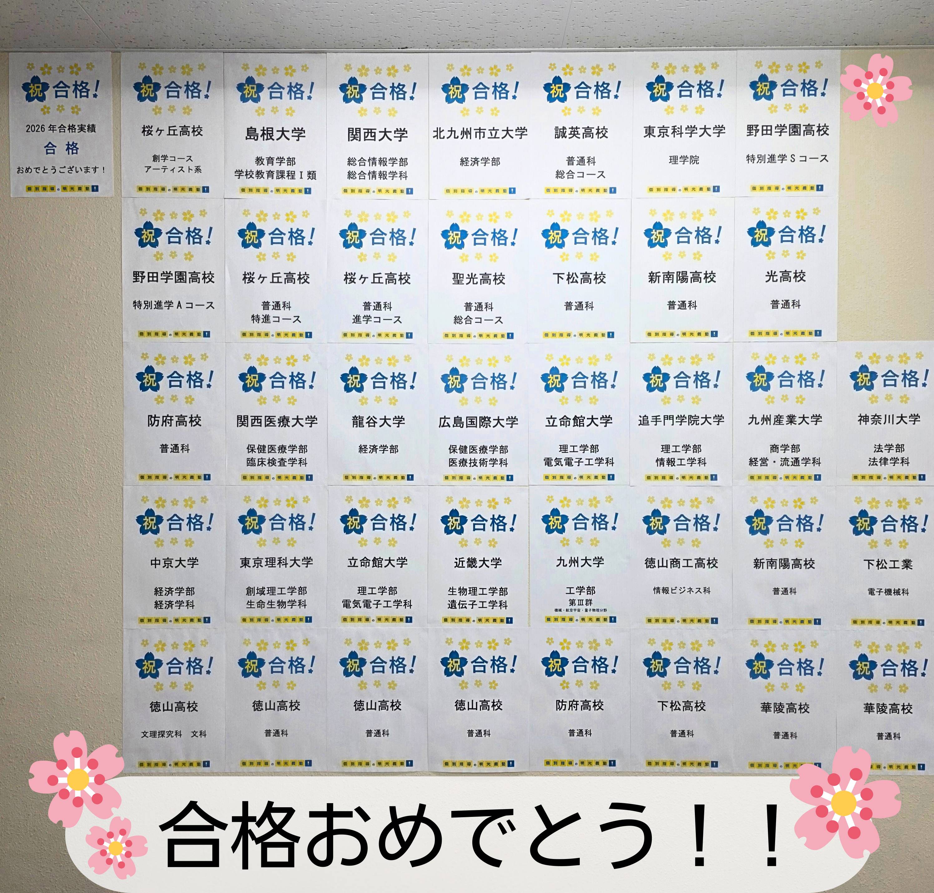 徳山中央教室、徳山東教室、新南陽教室、下松教室、光教室、小郡教室
